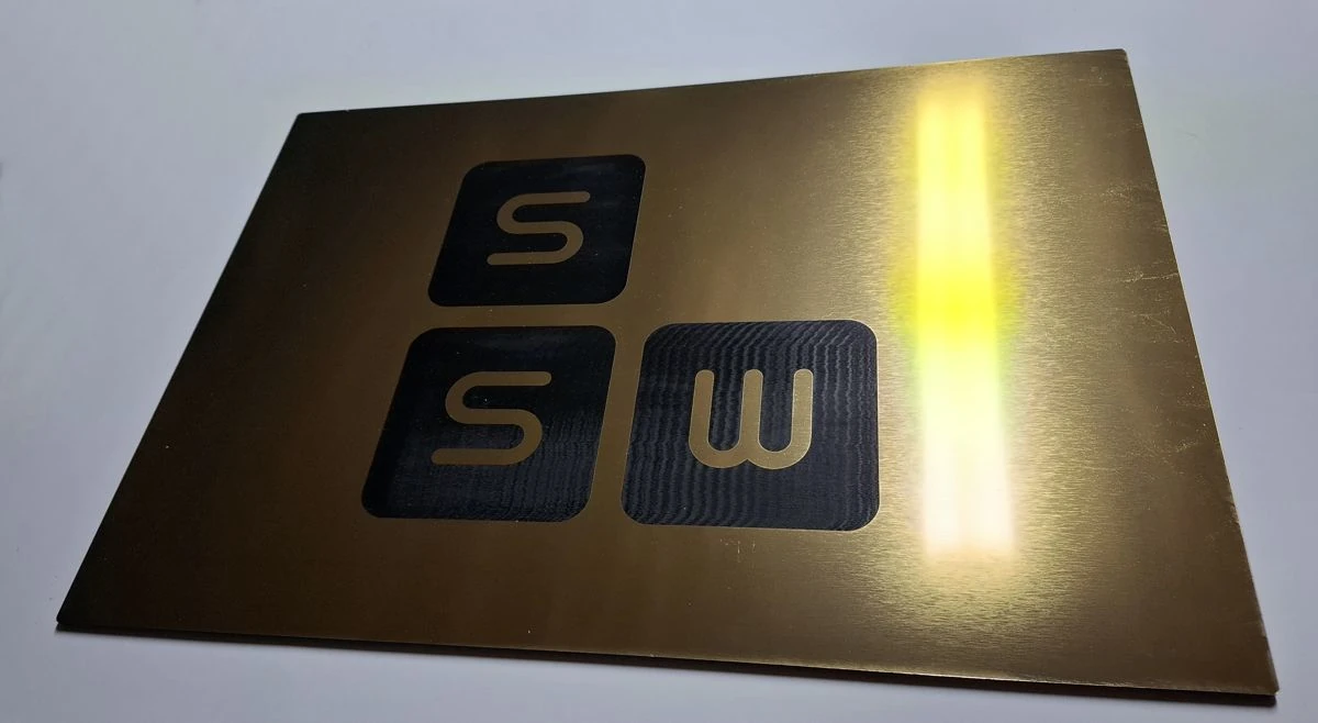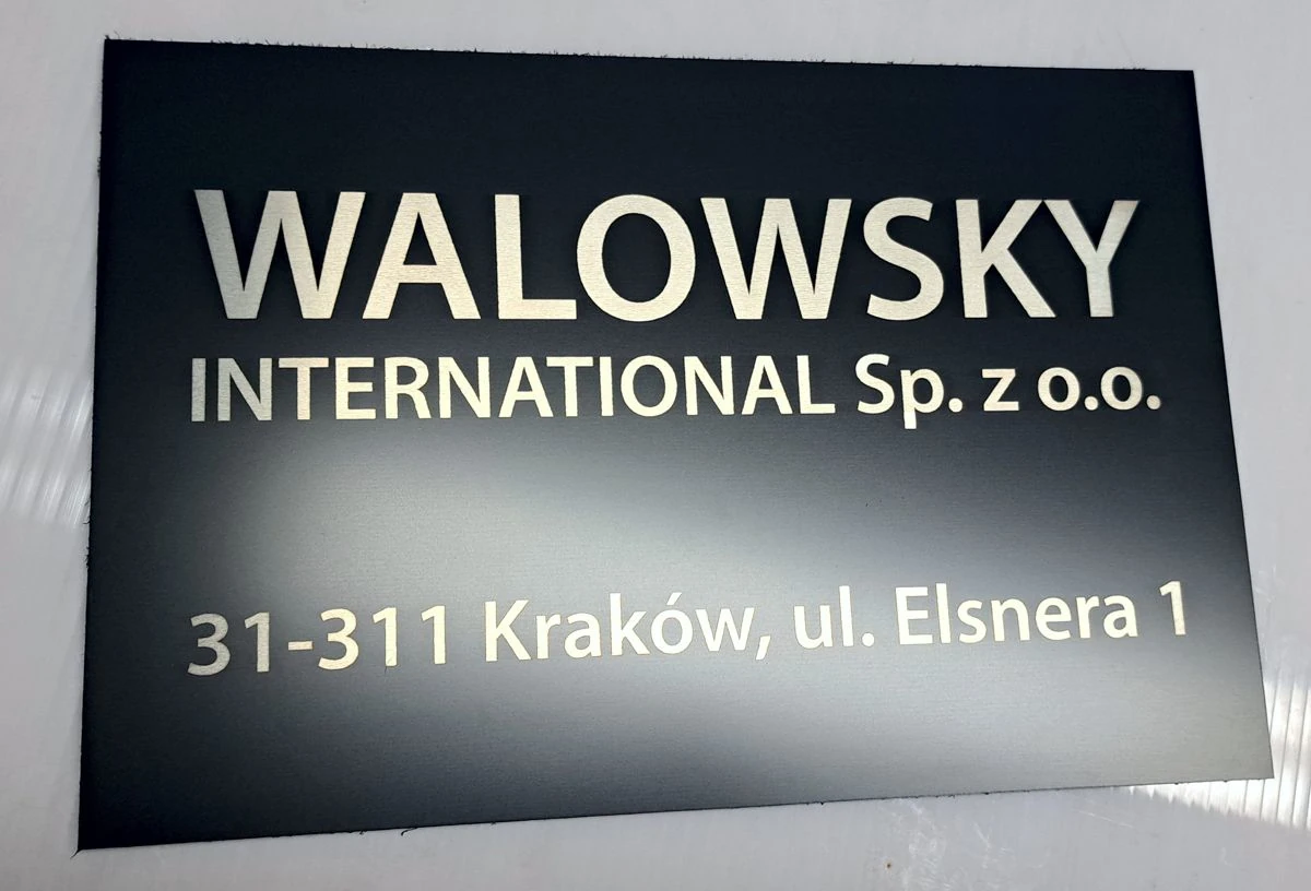 - Metal: Tabliczki metalowe, takie jak stal nierdzewna, dibond lub aluminium są trwałe i odporne na warunki atmosferyczne. Często stosuje się je na zewnątrz budynków. Mamy możliwość wykonania graweru laserowego w stali lakierowanej, grawer laserowy w aluminium czy grawer laserowy na dibondzie.