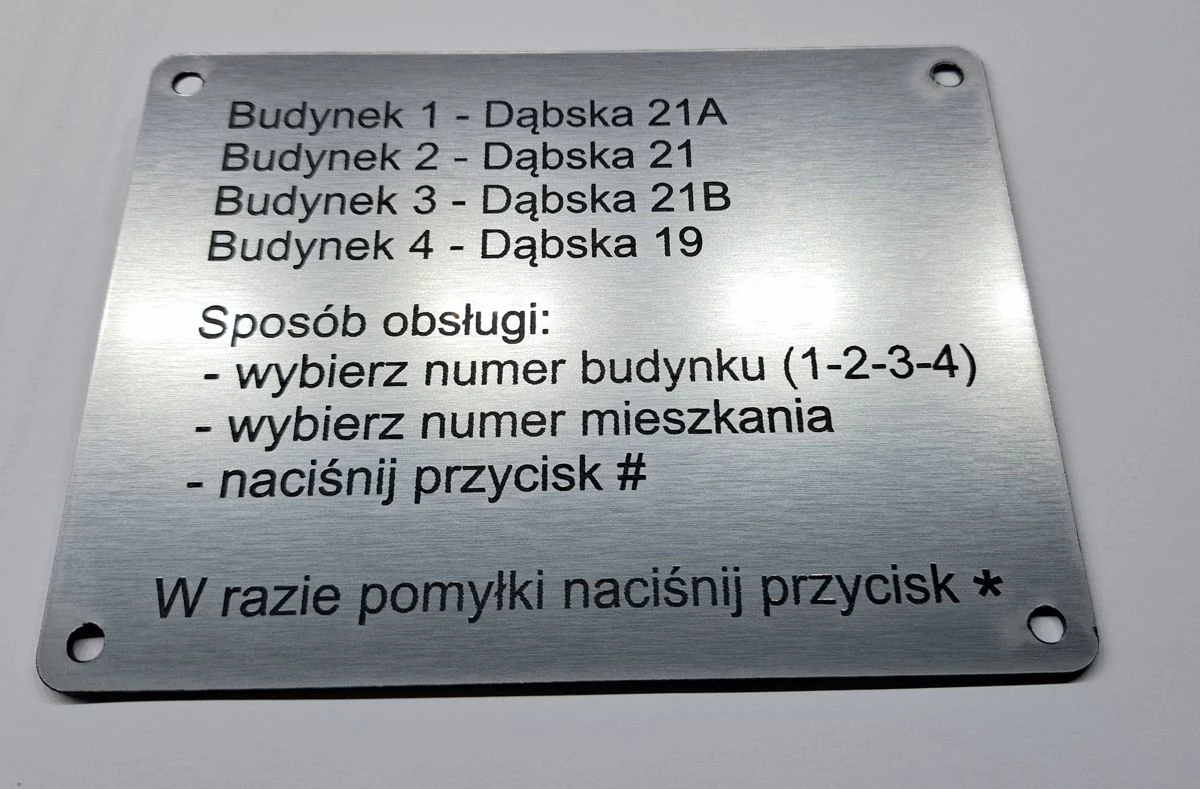 - Odporność na warunki atmosferyczne – grawerowanie laserowe tworzy wzór, który jest odporny na ścieranie, co zapewnia trwałość tabliczek w trudnych warunkach zewnętrznych.